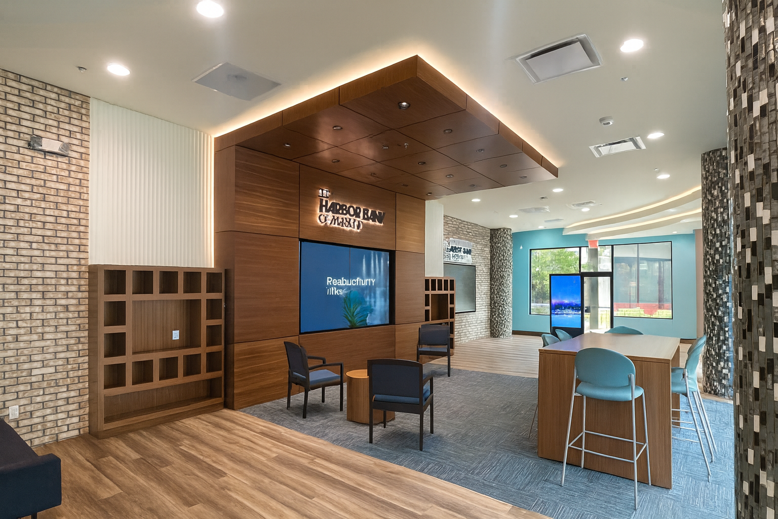 The exterior received a compete refresh with exterior panel facade and new storefront to make the new Harbor bank location a beautiful addition to the branch locations